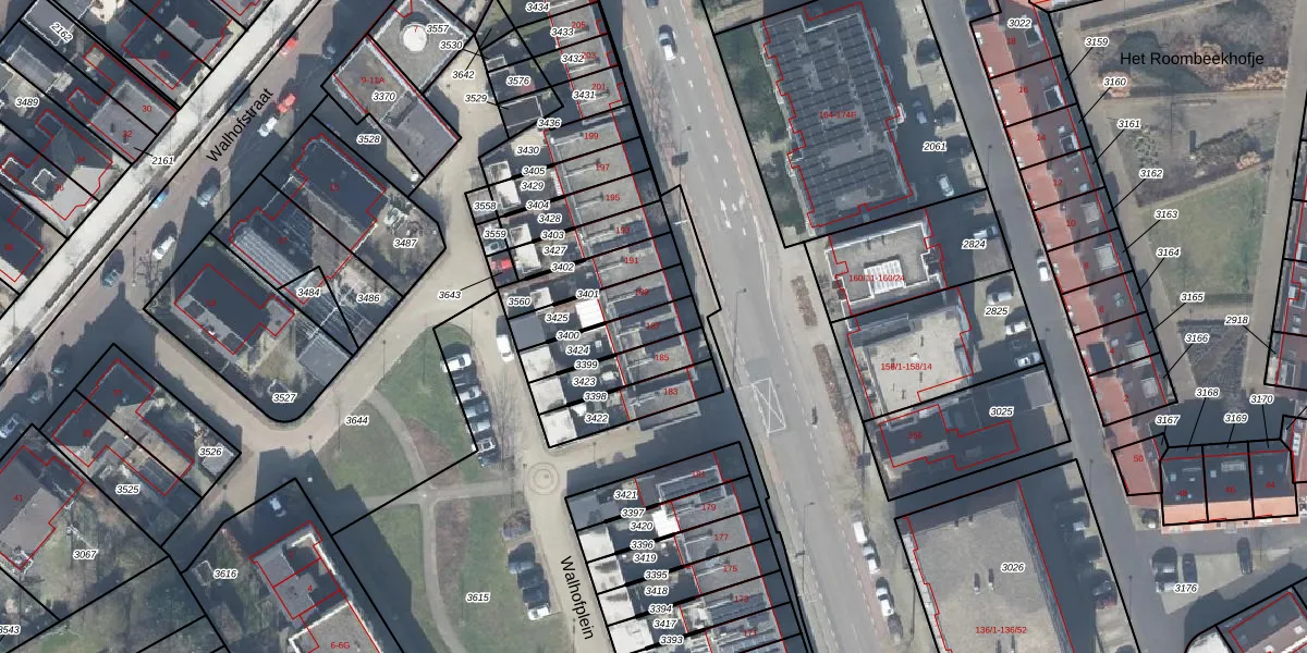 Gebruik de zoekbalk of klik op een perceel voor informatie over de adressen binnen dit perceel.