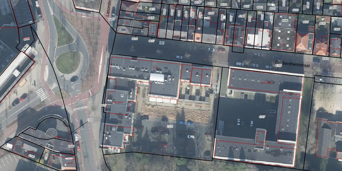 Het perceel waarop het adres ligt is ESD00-C-7131. De afkorting 'ESD00' staat voor kadastrale gemeente Enschede. De oppervlakte van het perceel is 3669 m². Dat is groter dan gemiddeld in Enschede, waar de gemiddelde perceeloppervlakte op 548,14 m² ligt. De grootste perceeloppervlakte in de kadastrale gemeente is 10,7 ha. De kleinste oppervlakte bedraagt 0 m². Op het perceel liggen in totaal 30 adressen. In de Basisregistratie Kadaster (BRK) werden de grenzen van het perceel geregistreerd op 09-09-2022.