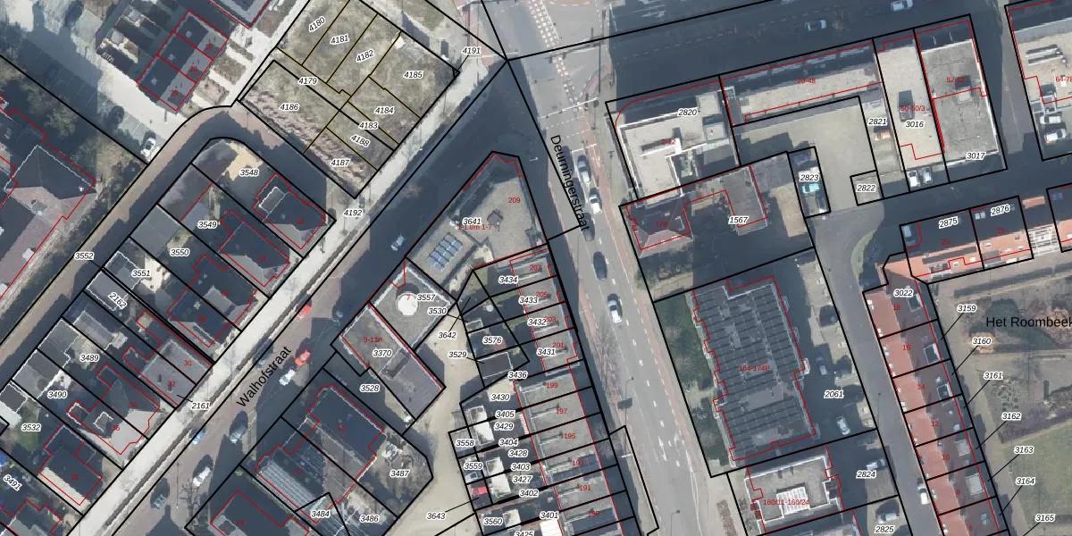 Gebruik de zoekbalk of klik op een perceel voor informatie over de adressen binnen dit perceel.