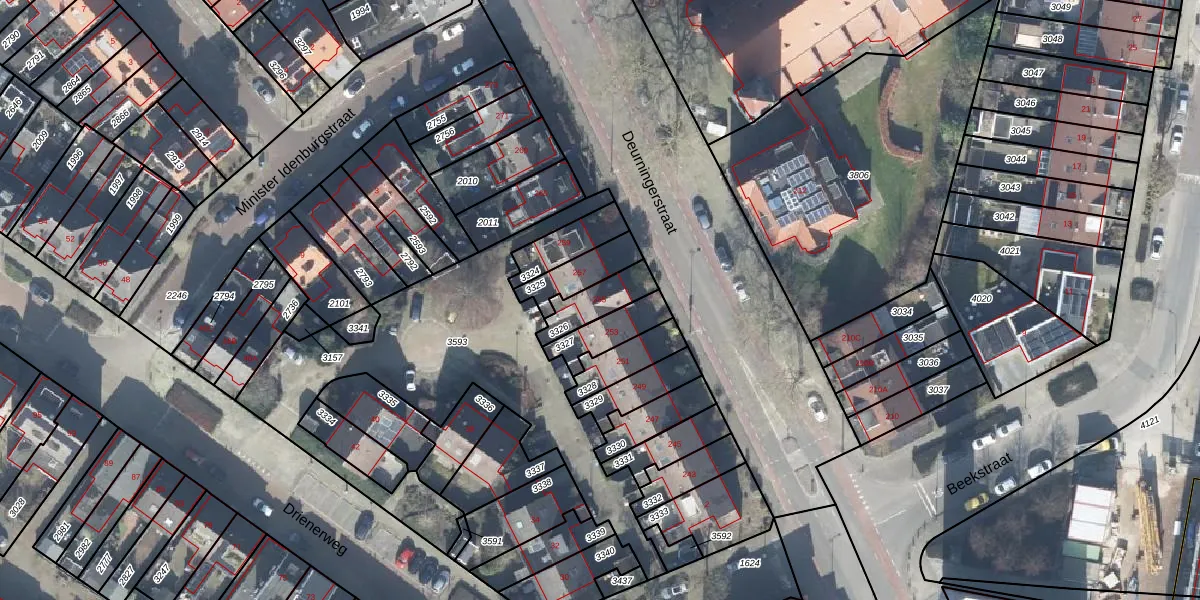 Gebruik de zoekbalk of klik op een perceel voor informatie over de adressen binnen dit perceel.