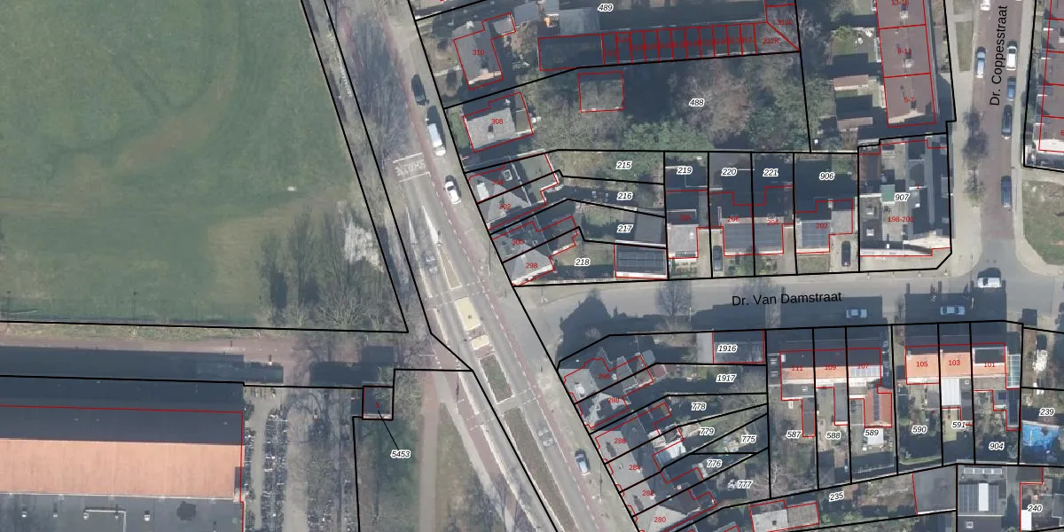 Gebruik de zoekbalk of klik op een perceel voor informatie over de adressen binnen dit perceel.