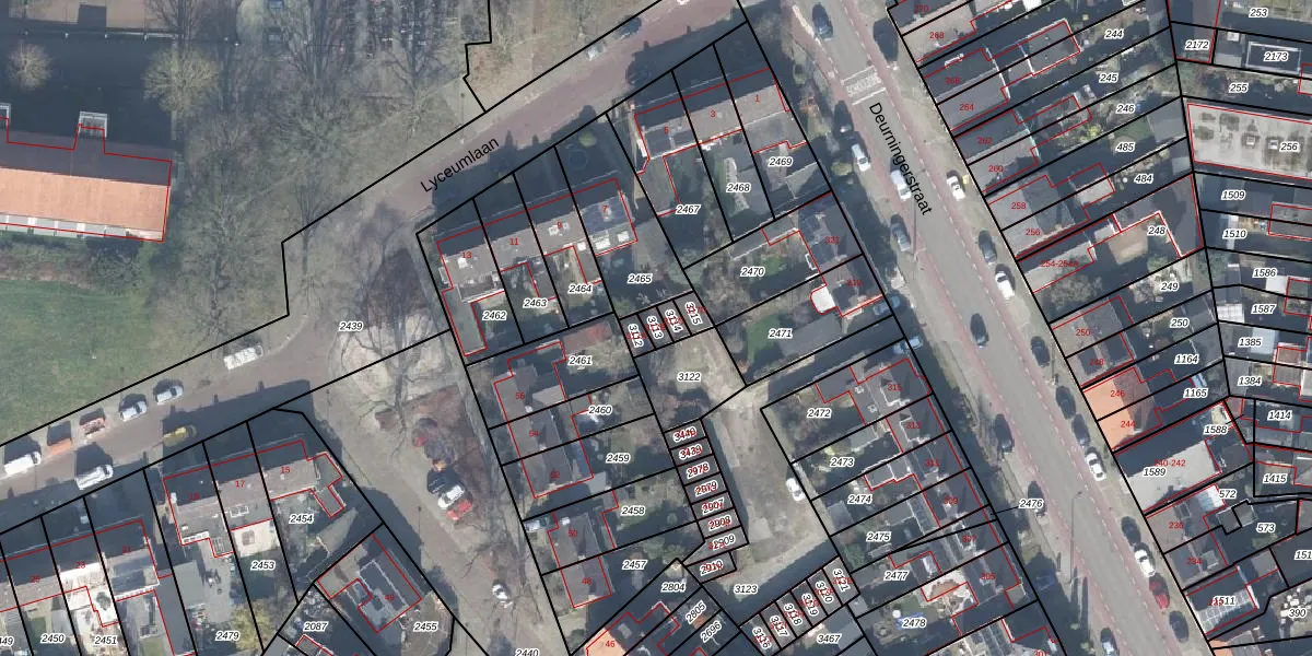 Gebruik de zoekbalk of klik op een perceel voor informatie over de adressen binnen dit perceel.