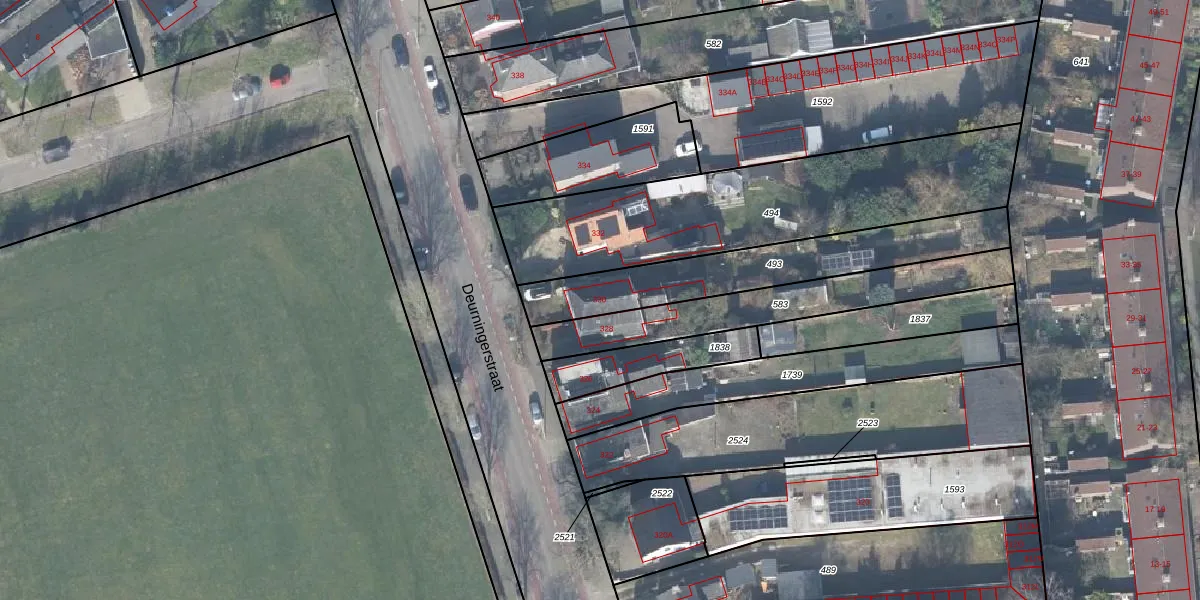 Deurningerstraat 330 is gelegen op kadastraal perceel LNK00R493. Deze kadastrale aanduiding is uniek en wordt gebruikt door het Kadaster om eigendomsrechten en andere zakelijke rechten vast te leggen. Het perceel maakt onderdeel uit van de kadastrale gemeente Lonneker.