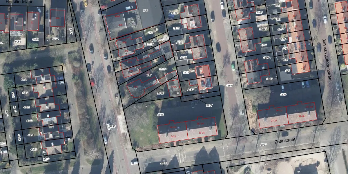 Gebruik de zoekbalk of klik op een perceel voor informatie over de adressen binnen dit perceel.