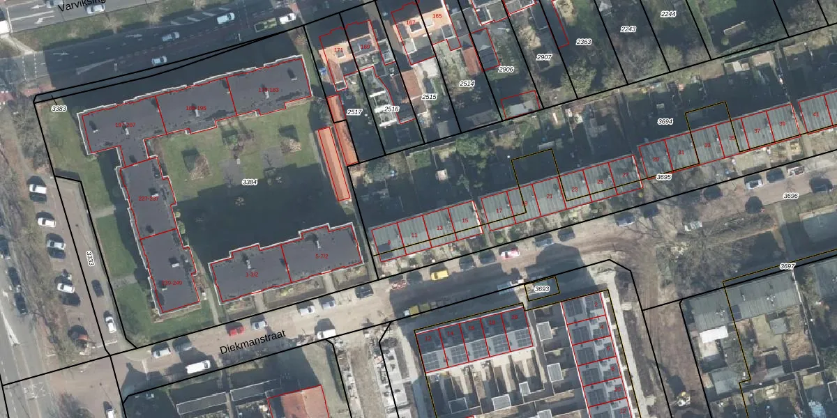 Het perceel waarop Diekmanstraat 13 staat heeft een oppervlakte van 3109 m². Dit is een zeer groot perceel. De perceeloppervlakte wordt geregistreerd door het Kadaster. Gedetailleerde informatie over de maten van dit perceel kunt u vinden in het rapport Kadastrale kaart met maatvoering van Diekmanstraat 13.