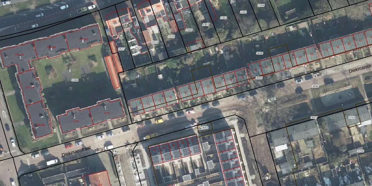 Het perceel waarop Diekmanstraat 17 staat heeft een oppervlakte van 3109 m². Dit is een zeer groot perceel. De perceeloppervlakte wordt geregistreerd door het Kadaster. Gedetailleerde informatie over de maten van dit perceel kunt u vinden in het rapport Kadastrale kaart met maatvoering van Diekmanstraat 17.