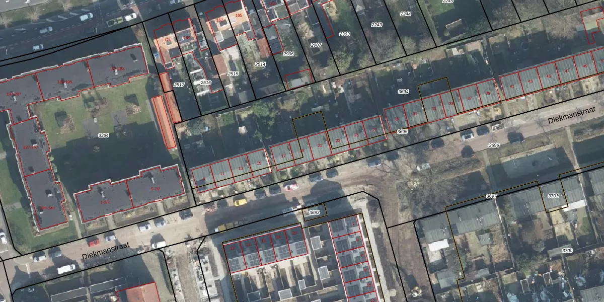 Het perceel waarop Diekmanstraat 19 staat heeft een oppervlakte van 1108 m². Dit is een zeer groot perceel. De perceeloppervlakte wordt geregistreerd door het Kadaster. Gedetailleerde informatie over de maten van dit perceel kunt u vinden in het rapport Kadastrale kaart met maatvoering van Diekmanstraat 19.