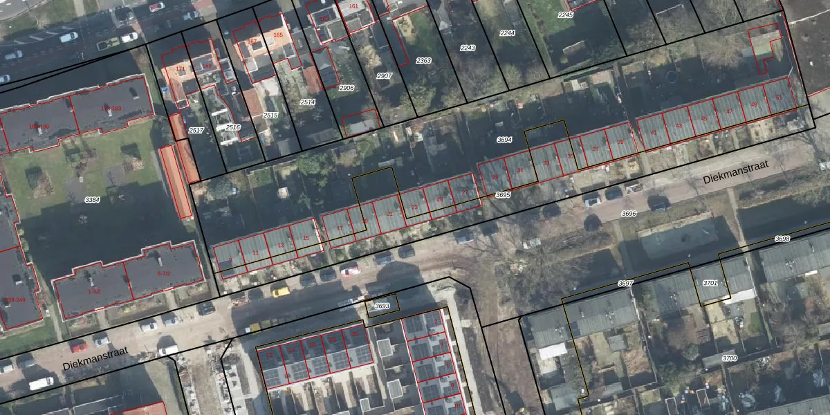 Het perceel waarop Diekmanstraat 23 staat heeft een oppervlakte van 3109 m². Dit is een zeer groot perceel. De perceeloppervlakte wordt geregistreerd door het Kadaster. Gedetailleerde informatie over de maten van dit perceel kunt u vinden in het rapport Kadastrale kaart met maatvoering van Diekmanstraat 23.