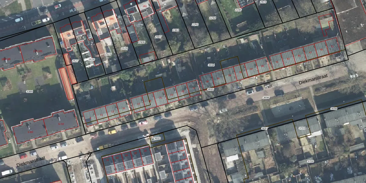 Het perceel waarop Diekmanstraat 25 staat heeft een oppervlakte van 3109 m². Dit is een zeer groot perceel. De perceeloppervlakte wordt geregistreerd door het Kadaster. Gedetailleerde informatie over de maten van dit perceel kunt u vinden in het rapport Kadastrale kaart met maatvoering van Diekmanstraat 25.