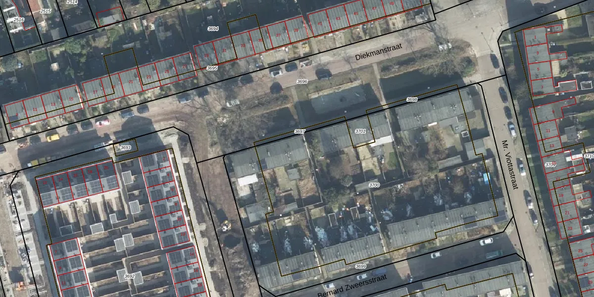 Het perceel waarop Diekmanstraat 34 staat heeft een oppervlakte van 3258 m². Dit is een zeer groot perceel. De perceeloppervlakte wordt geregistreerd door het Kadaster. Gedetailleerde informatie over de maten van dit perceel kunt u vinden in het rapport Kadastrale kaart met maatvoering van Diekmanstraat 34.