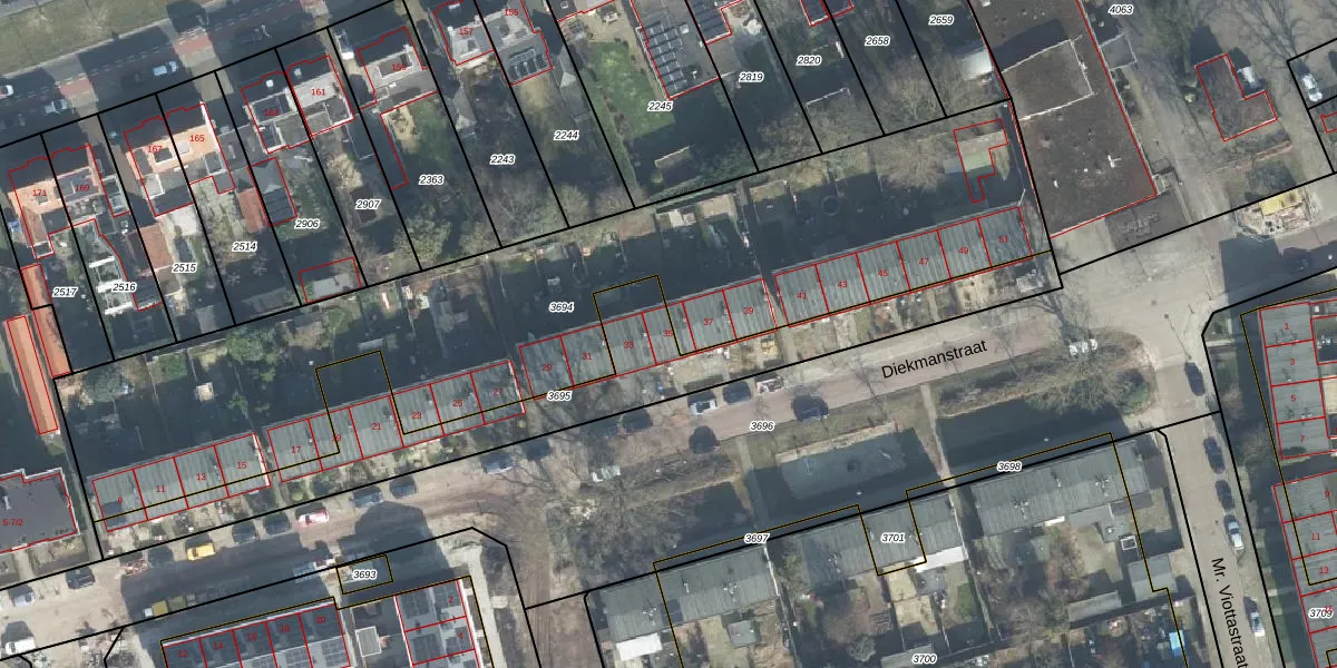 Het perceel waarop Diekmanstraat 35 staat heeft een oppervlakte van 1108 m². Dit is een zeer groot perceel. De perceeloppervlakte wordt geregistreerd door het Kadaster. Gedetailleerde informatie over de maten van dit perceel kunt u vinden in het rapport Kadastrale kaart met maatvoering van Diekmanstraat 35.