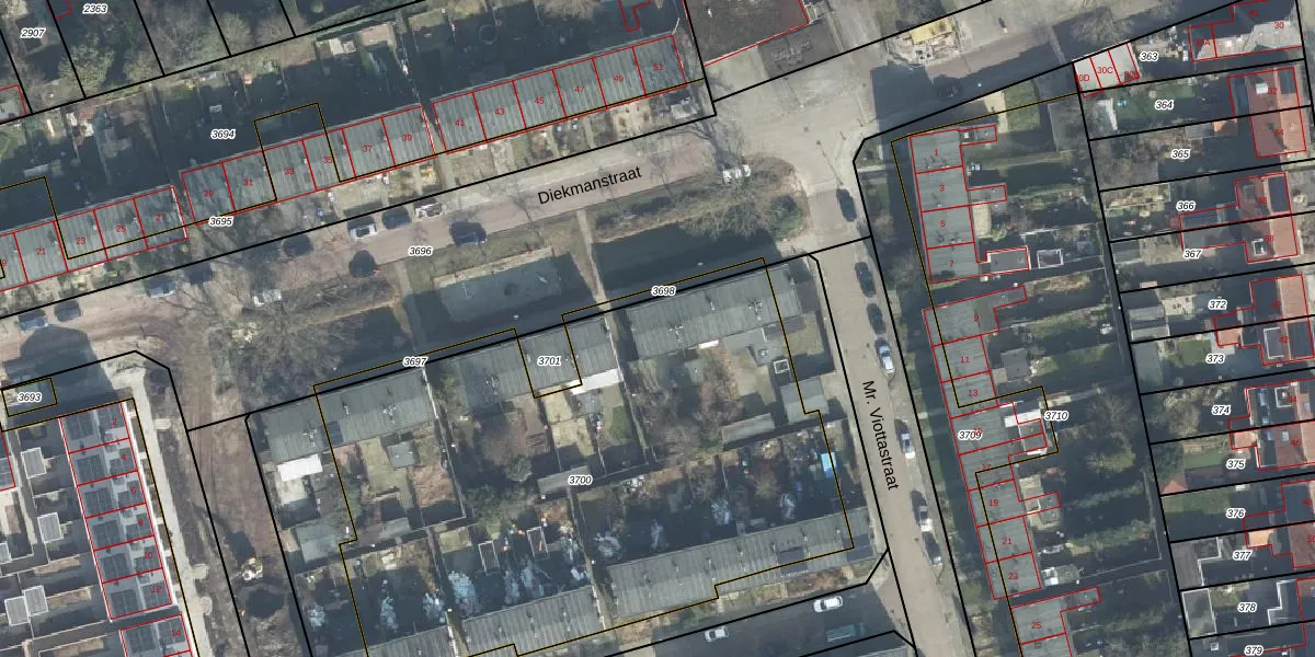 Het perceel waarop Diekmanstraat 46 staat heeft een oppervlakte van 3258 m². Dit is een zeer groot perceel. De perceeloppervlakte wordt geregistreerd door het Kadaster. Gedetailleerde informatie over de maten van dit perceel kunt u vinden in het rapport Kadastrale kaart met maatvoering van Diekmanstraat 46.