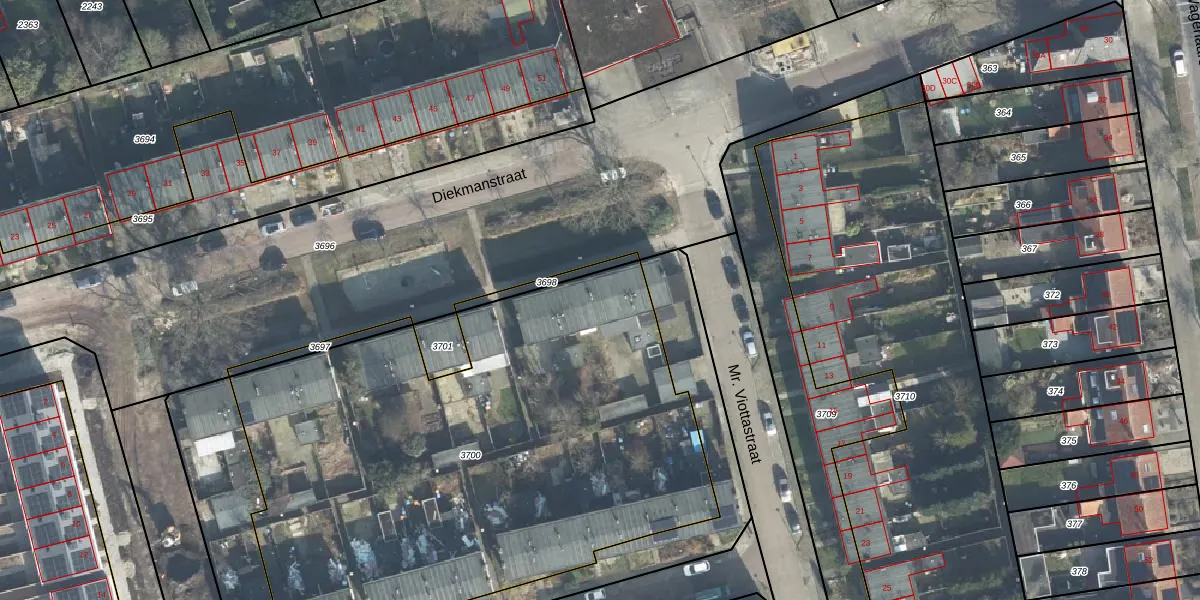 Het perceel waarop Diekmanstraat 50 staat heeft een oppervlakte van 3258 m². Dit is een zeer groot perceel. De perceeloppervlakte wordt geregistreerd door het Kadaster. Gedetailleerde informatie over de maten van dit perceel kunt u vinden in het rapport Kadastrale kaart met maatvoering van Diekmanstraat 50.