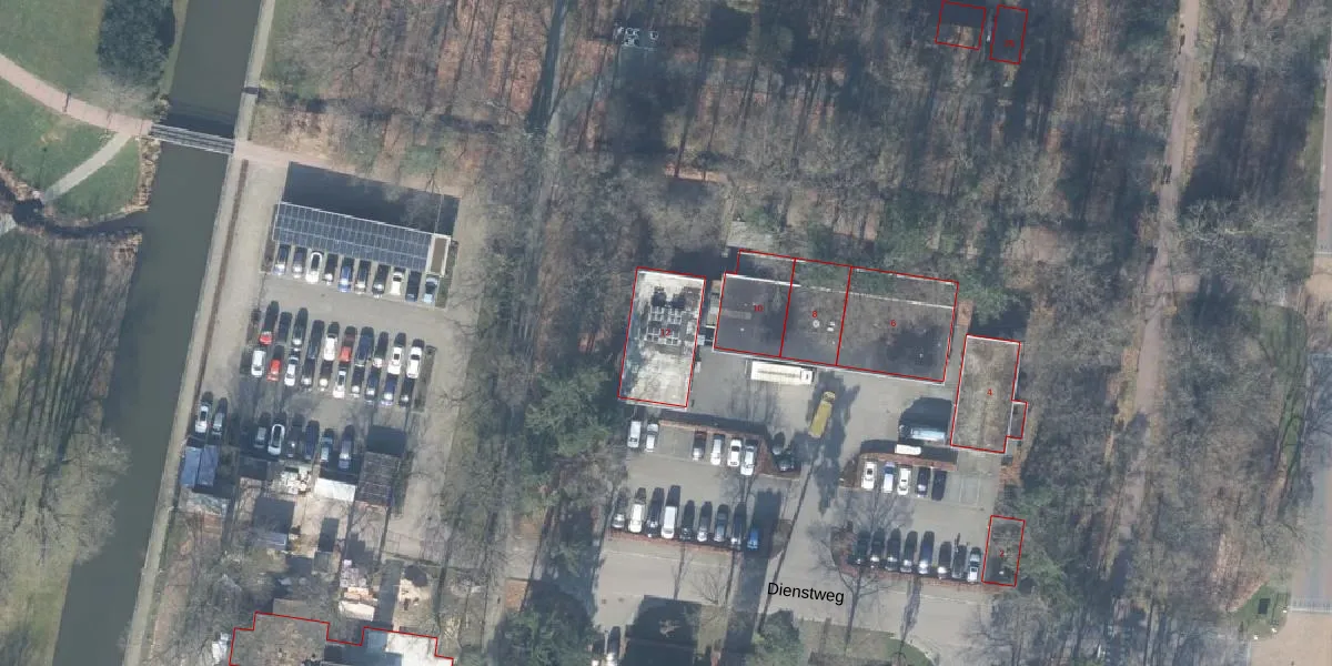 Het perceel waarop Dienstweg 12 staat heeft een oppervlakte van 1,16 km². Dit is een zeer groot perceel. De perceeloppervlakte wordt geregistreerd door het Kadaster. Gedetailleerde informatie over de maten van dit perceel kunt u vinden in het rapport Kadastrale kaart met maatvoering van Dienstweg 12.
