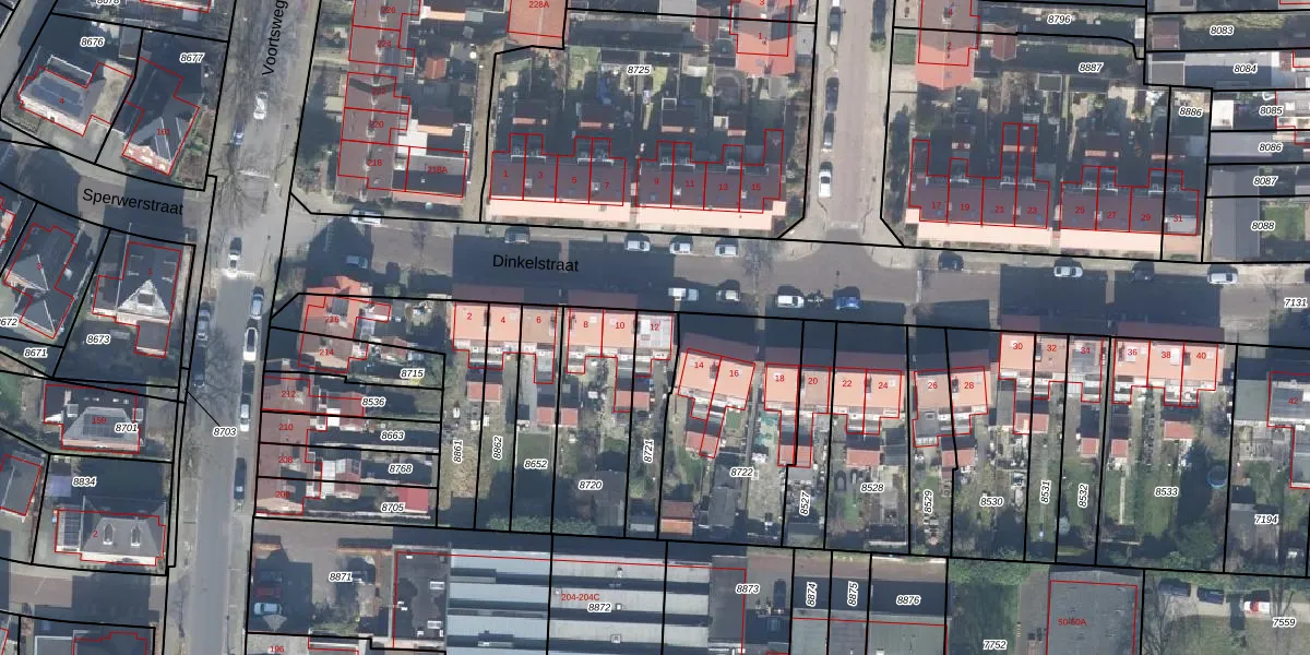 Het perceel waarop Dinkelstraat 12 staat heeft een oppervlakte van 197 m². Dit is een middelgroot perceel. De perceeloppervlakte wordt geregistreerd door het Kadaster. Gedetailleerde informatie over de maten van dit perceel kunt u vinden in het rapport Kadastrale kaart met maatvoering van Dinkelstraat 12.