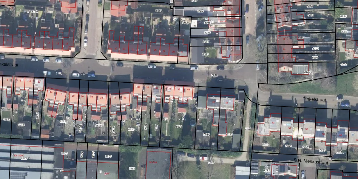 Het perceel waarop Dinkelstraat 38 staat heeft een oppervlakte van 685 m². Dit is een groot perceel. De perceeloppervlakte wordt geregistreerd door het Kadaster. Gedetailleerde informatie over de maten van dit perceel kunt u vinden in het rapport Kadastrale kaart met maatvoering van Dinkelstraat 38.