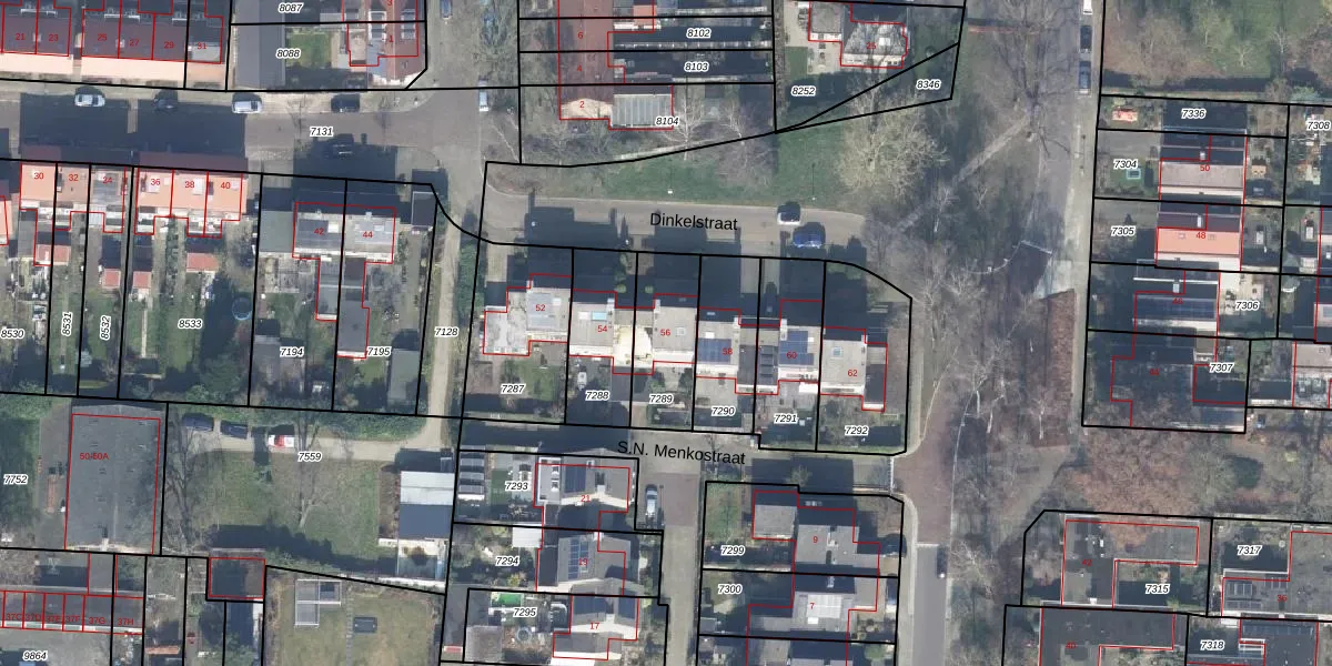 Dinkelstraat 56 is gelegen op kadastraal perceel LNK00C7289. Deze kadastrale aanduiding is uniek en wordt gebruikt door het Kadaster om eigendomsrechten en andere zakelijke rechten vast te leggen. Het perceel maakt onderdeel uit van de kadastrale gemeente Lonneker.
