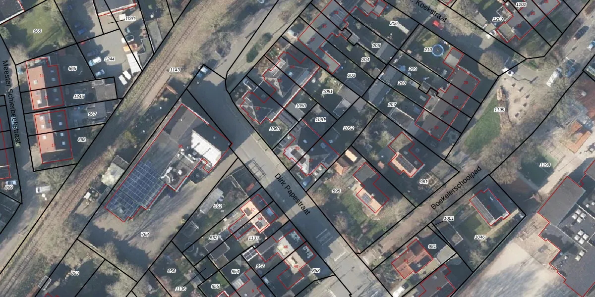 Het perceel waarop Dirk Papestraat 25 staat heeft een oppervlakte van 205 m². Dit is een middelgroot perceel. De perceeloppervlakte wordt geregistreerd door het Kadaster. Gedetailleerde informatie over de maten van dit perceel kunt u vinden in het rapport Kadastrale kaart met maatvoering van Dirk Papestraat 25.