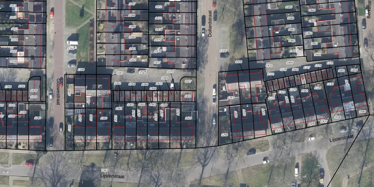 Het perceel waarop Dollardstraat 1-A staat heeft een oppervlakte van 53 m². Dit is een klein perceel. De perceeloppervlakte wordt geregistreerd door het Kadaster. Gedetailleerde informatie over de maten van dit perceel kunt u vinden in het rapport Kadastrale kaart met maatvoering van Dollardstraat 1-A.
