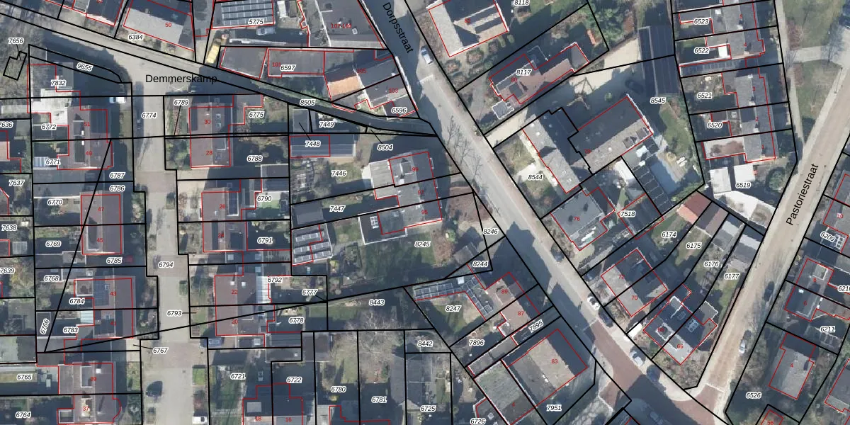 Gebruik de zoekbalk of klik op een perceel voor informatie over de adressen binnen dit perceel.