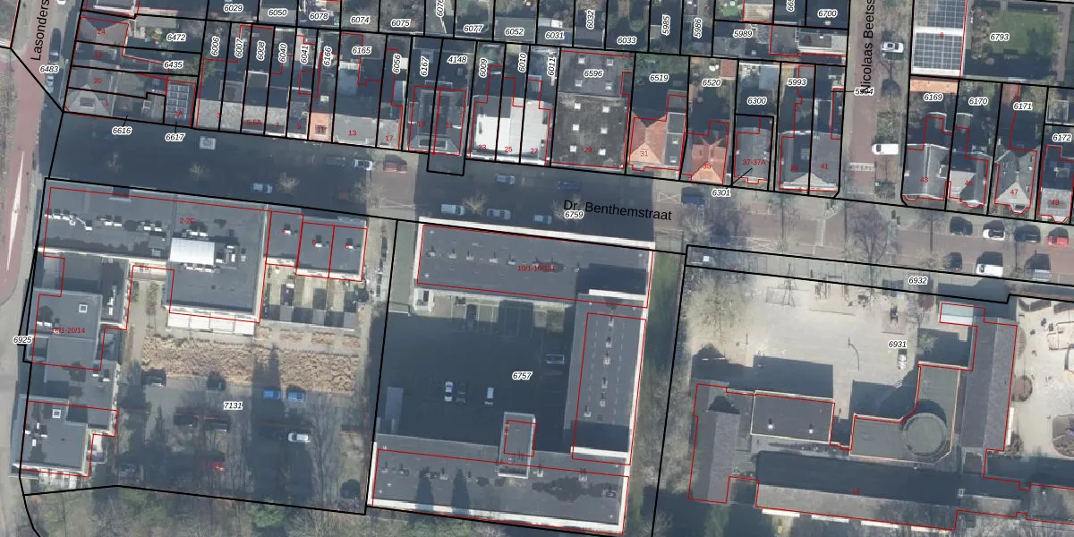 Het perceel waarop Dr. Benthemstraat 10-14 staat heeft een oppervlakte van 2919 m². Dit is een zeer groot perceel. De perceeloppervlakte wordt geregistreerd door het Kadaster. Gedetailleerde informatie over de maten van dit perceel kunt u vinden in het rapport Kadastrale kaart met maatvoering van Dr. Benthemstraat 10-14.