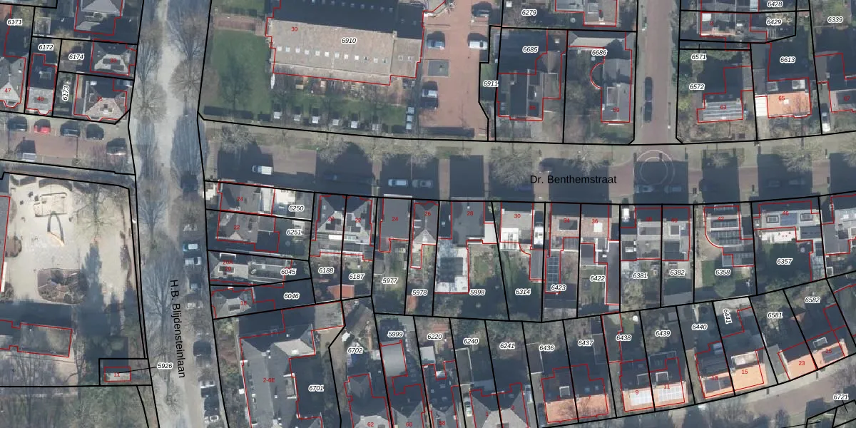 Het perceel waarop Dr. Benthemstraat 26 staat heeft een oppervlakte van 179 m². Dit is een middelgroot perceel. De perceeloppervlakte wordt geregistreerd door het Kadaster. Gedetailleerde informatie over de maten van dit perceel kunt u vinden in het rapport Kadastrale kaart met maatvoering van Dr. Benthemstraat 26.