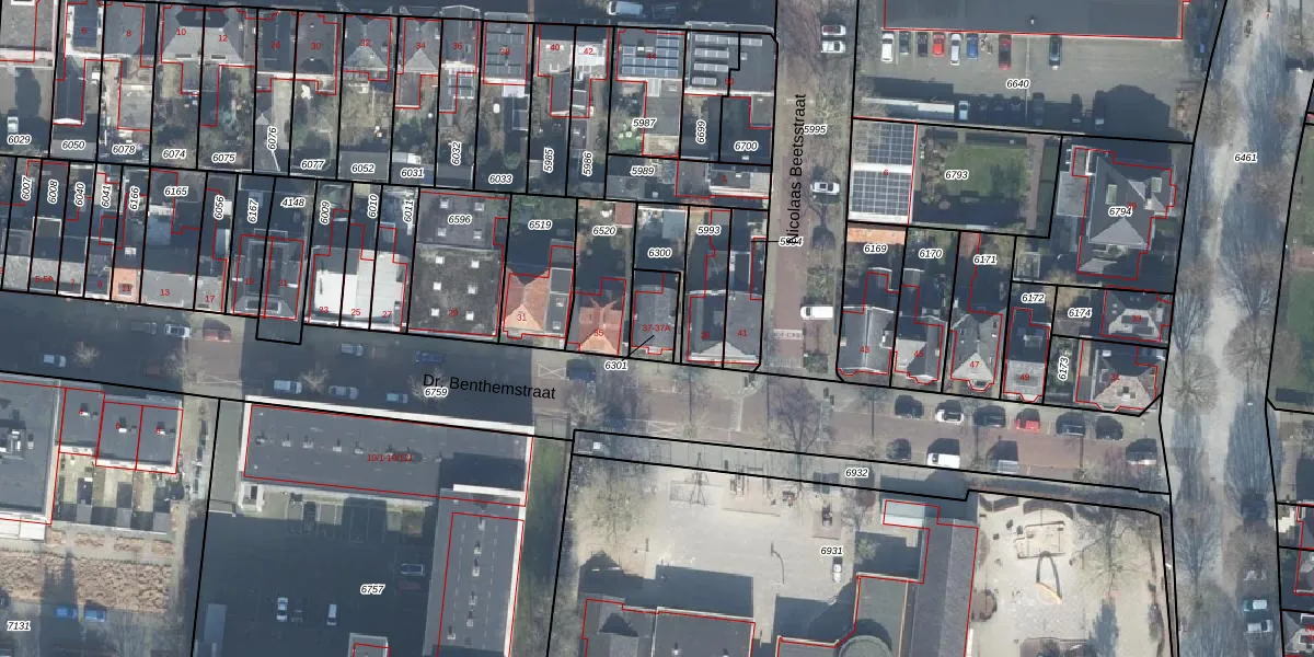 Het perceel waarop Dr. Benthemstraat 37 staat heeft een oppervlakte van 97 m². Dit is een klein perceel. De perceeloppervlakte wordt geregistreerd door het Kadaster. Gedetailleerde informatie over de maten van dit perceel kunt u vinden in het rapport Kadastrale kaart met maatvoering van Dr. Benthemstraat 37.