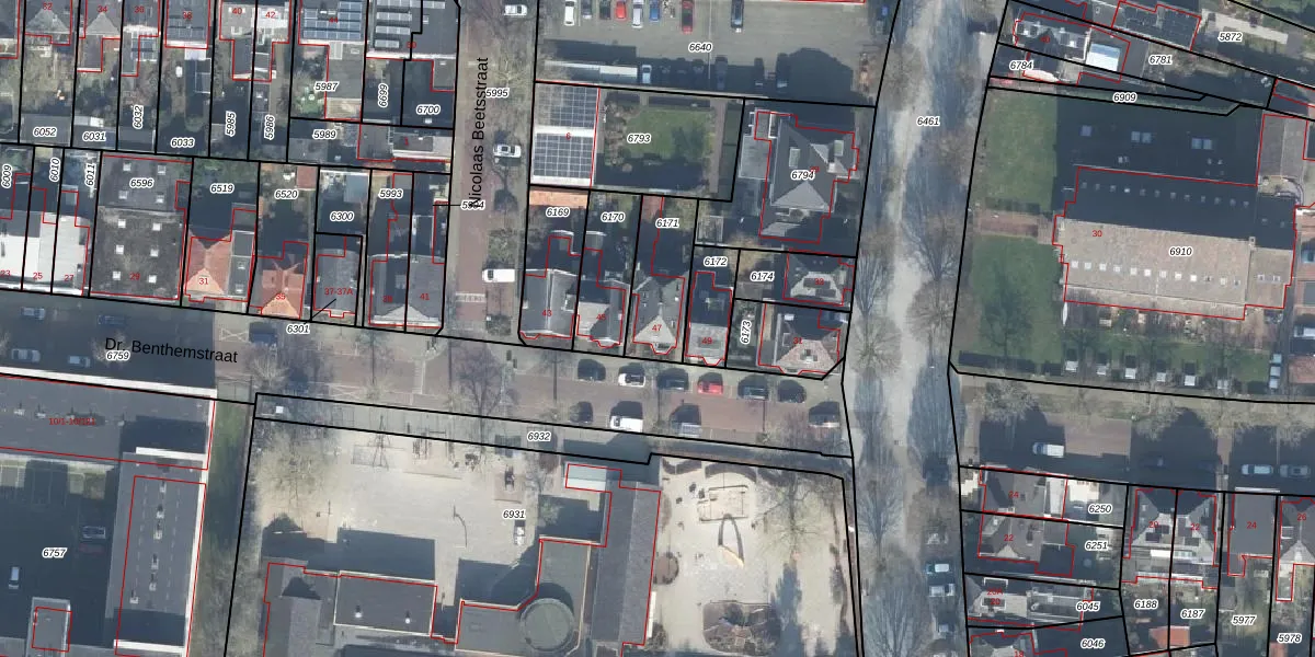 Dr. Benthemstraat 47 is gelegen op kadastraal perceel ESD00C6171. Deze kadastrale aanduiding is uniek en wordt gebruikt door het Kadaster om eigendomsrechten en andere zakelijke rechten vast te leggen. Het perceel maakt onderdeel uit van de kadastrale gemeente Enschede.