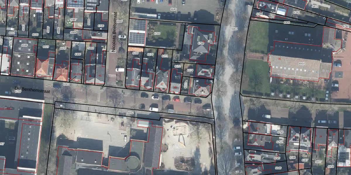 Dr. Benthemstraat 49 is gelegen op kadastraal perceel ESD00C6172. Deze kadastrale aanduiding is uniek en wordt gebruikt door het Kadaster om eigendomsrechten en andere zakelijke rechten vast te leggen. Het perceel maakt onderdeel uit van de kadastrale gemeente Enschede.