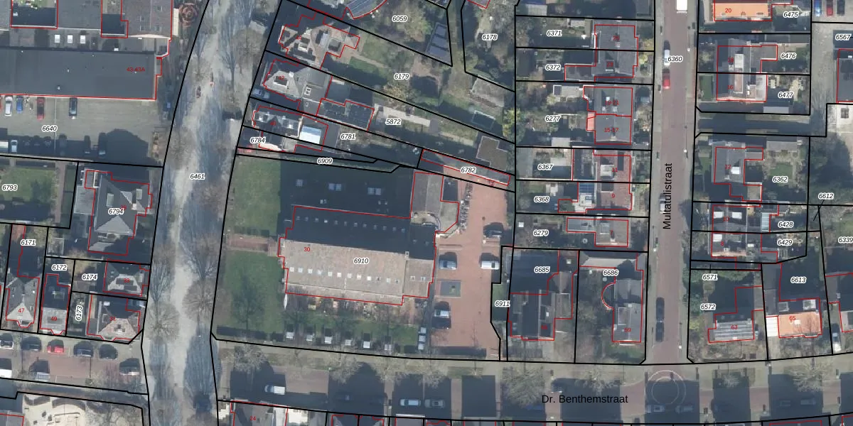 Het perceel waarop Dr. Benthemstraat 53-14 staat heeft een oppervlakte van 2833 m². Dit is een zeer groot perceel. De perceeloppervlakte wordt geregistreerd door het Kadaster. Gedetailleerde informatie over de maten van dit perceel kunt u vinden in het rapport Kadastrale kaart met maatvoering van Dr. Benthemstraat 53-14.