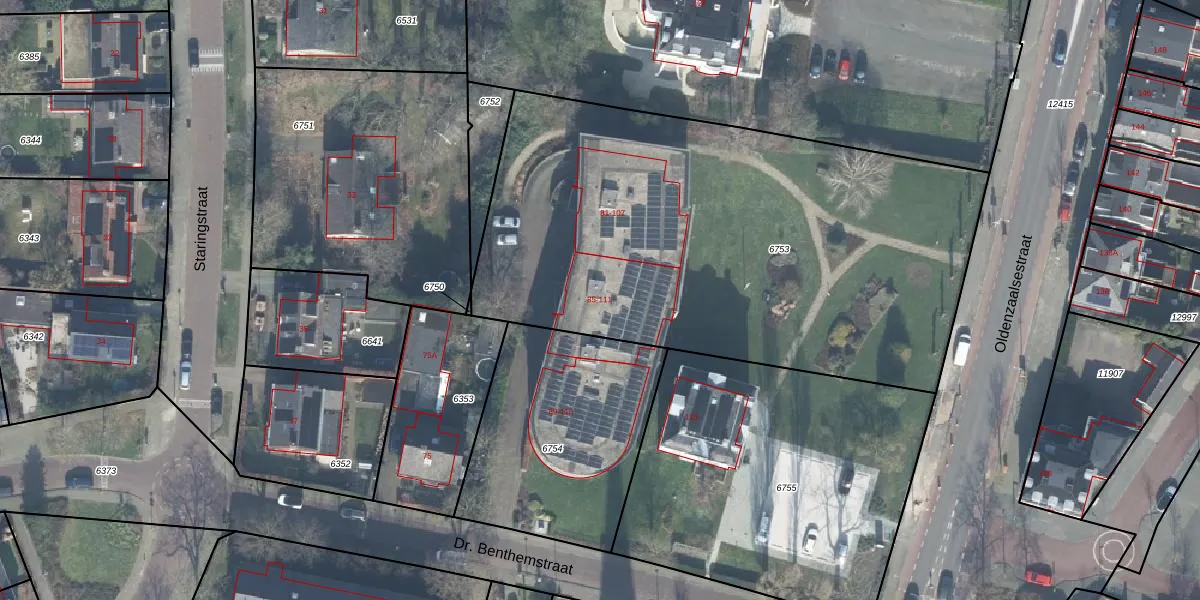 Dr. Benthemstraat 87 is gelegen op kadastraal perceel ESD00C6753. Deze kadastrale aanduiding is uniek en wordt gebruikt door het Kadaster om eigendomsrechten en andere zakelijke rechten vast te leggen. Het perceel maakt onderdeel uit van de kadastrale gemeente Enschede.