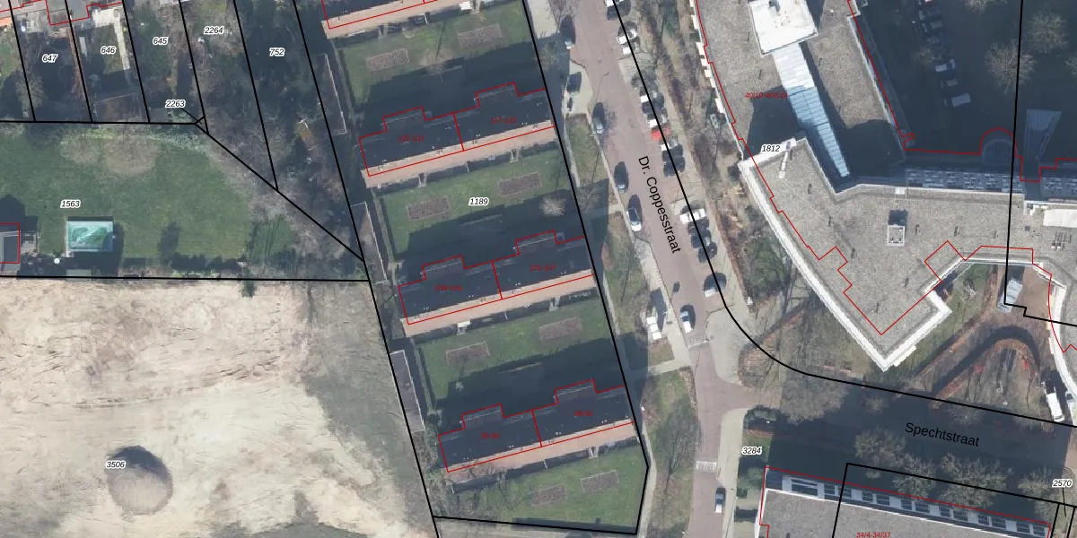 Het perceel waarop Dr. Coppesstraat 101 staat heeft een oppervlakte van 5235 m². Dit is een zeer groot perceel. De perceeloppervlakte wordt geregistreerd door het Kadaster. Gedetailleerde informatie over de maten van dit perceel kunt u vinden in het rapport Kadastrale kaart met maatvoering van Dr. Coppesstraat 101.