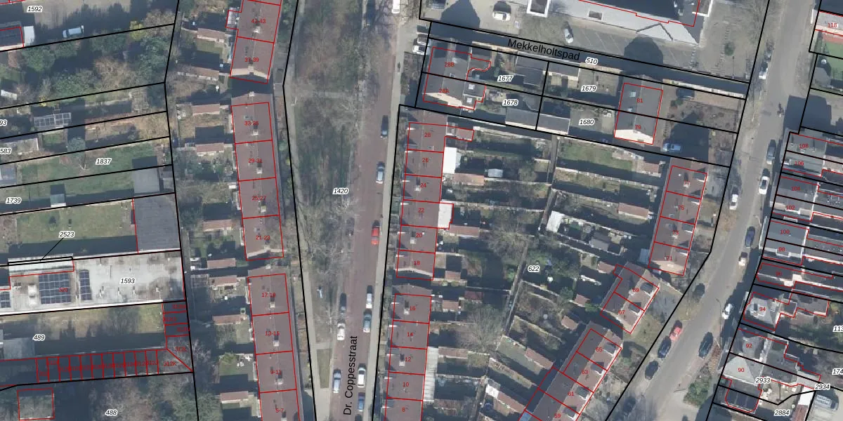 Dr. Coppesstraat 22 is gelegen op kadastraal perceel LNK00R622. Deze kadastrale aanduiding is uniek en wordt gebruikt door het Kadaster om eigendomsrechten en andere zakelijke rechten vast te leggen. Het perceel maakt onderdeel uit van de kadastrale gemeente Lonneker.