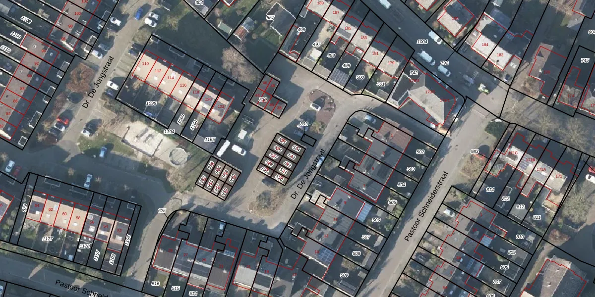 Dr. De Jongstraat 2 is gelegen op kadastraal perceel LNK00W524. Deze kadastrale aanduiding is uniek en wordt gebruikt door het Kadaster om eigendomsrechten en andere zakelijke rechten vast te leggen. Het perceel maakt onderdeel uit van de kadastrale gemeente Lonneker.
