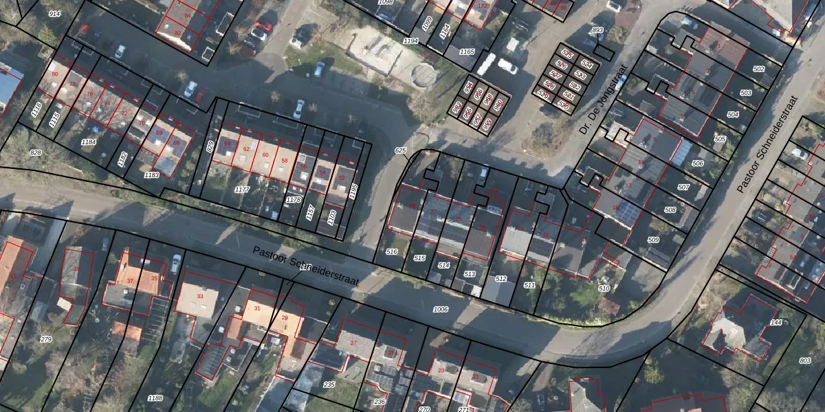 Gebruik de zoekbalk of klik op een perceel voor informatie over de adressen binnen dit perceel.