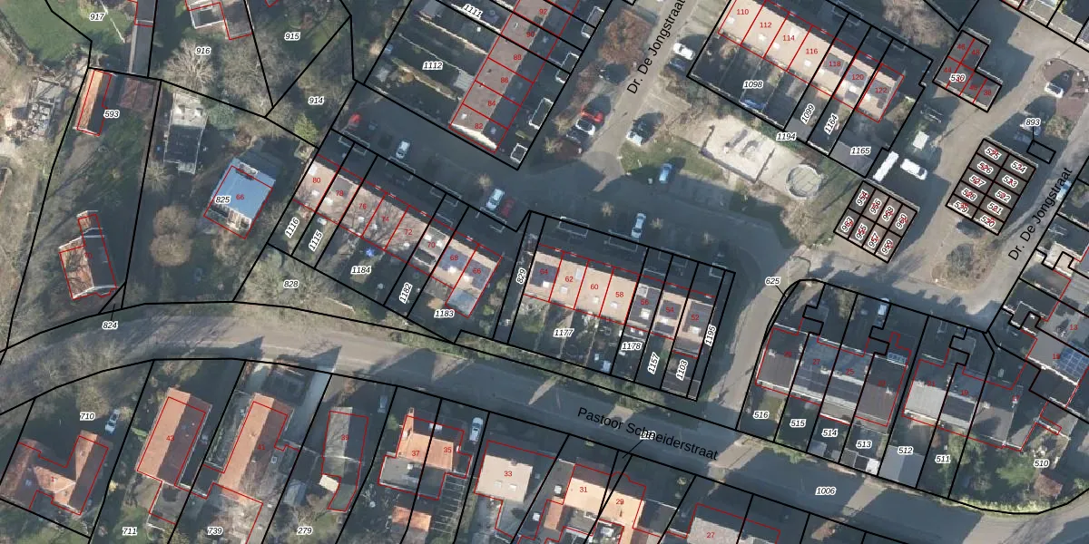 Het perceel waarop Dr. De Jongstraat 64 staat heeft een oppervlakte van 480 m². Dit is een groot perceel. De perceeloppervlakte wordt geregistreerd door het Kadaster. Gedetailleerde informatie over de maten van dit perceel kunt u vinden in het rapport Kadastrale kaart met maatvoering van Dr. De Jongstraat 64.
