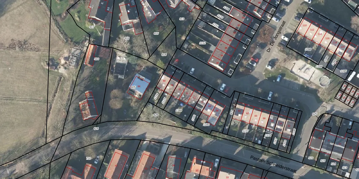 Dr. De Jongstraat 76 is gelegen op kadastraal perceel LNK00W1184. Deze kadastrale aanduiding is uniek en wordt gebruikt door het Kadaster om eigendomsrechten en andere zakelijke rechten vast te leggen. Het perceel maakt onderdeel uit van de kadastrale gemeente Lonneker.