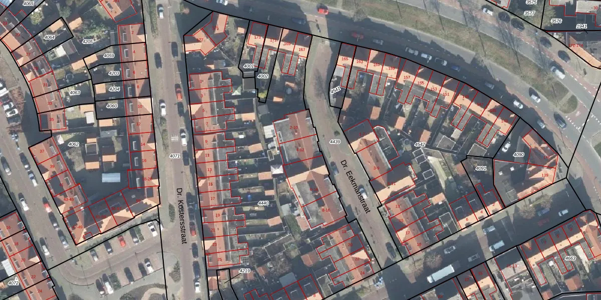 Het perceel waarop Dr. Eekmanstraat 4 staat heeft een oppervlakte van 4165 m². Dit is een zeer groot perceel. De perceeloppervlakte wordt geregistreerd door het Kadaster. Gedetailleerde informatie over de maten van dit perceel kunt u vinden in het rapport Kadastrale kaart met maatvoering van Dr. Eekmanstraat 4.