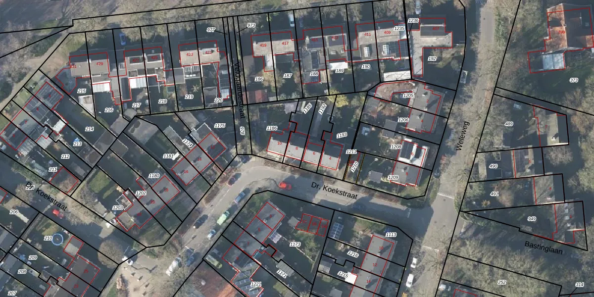 Dr. Koekstraat 8 is gelegen op kadastraal perceel LNK00W1185. Deze kadastrale aanduiding is uniek en wordt gebruikt door het Kadaster om eigendomsrechten en andere zakelijke rechten vast te leggen. Het perceel maakt onderdeel uit van de kadastrale gemeente Lonneker.