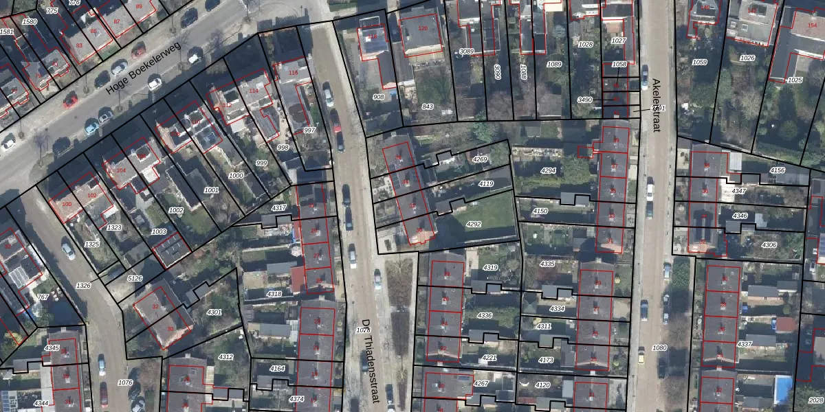 Dr. Thiadensstraat 32 is gelegen op kadastraal perceel LNK00Q4119. Deze kadastrale aanduiding is uniek en wordt gebruikt door het Kadaster om eigendomsrechten en andere zakelijke rechten vast te leggen. Het perceel maakt onderdeel uit van de kadastrale gemeente Lonneker.