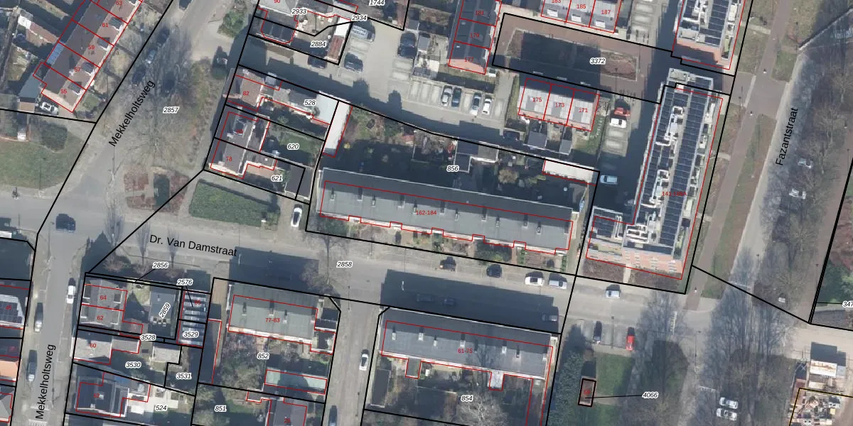 Dr. Van Damstraat 174 is gelegen op kadastraal perceel LNK00R856. Deze kadastrale aanduiding is uniek en wordt gebruikt door het Kadaster om eigendomsrechten en andere zakelijke rechten vast te leggen. Het perceel maakt onderdeel uit van de kadastrale gemeente Lonneker.