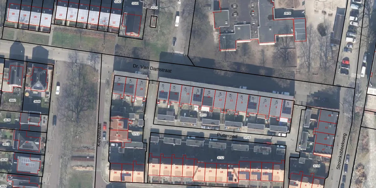 Dr. Van Damstraat 19 is gelegen op kadastraal perceel ESD00K3713. Deze kadastrale aanduiding is uniek en wordt gebruikt door het Kadaster om eigendomsrechten en andere zakelijke rechten vast te leggen. Het perceel maakt onderdeel uit van de kadastrale gemeente Enschede.