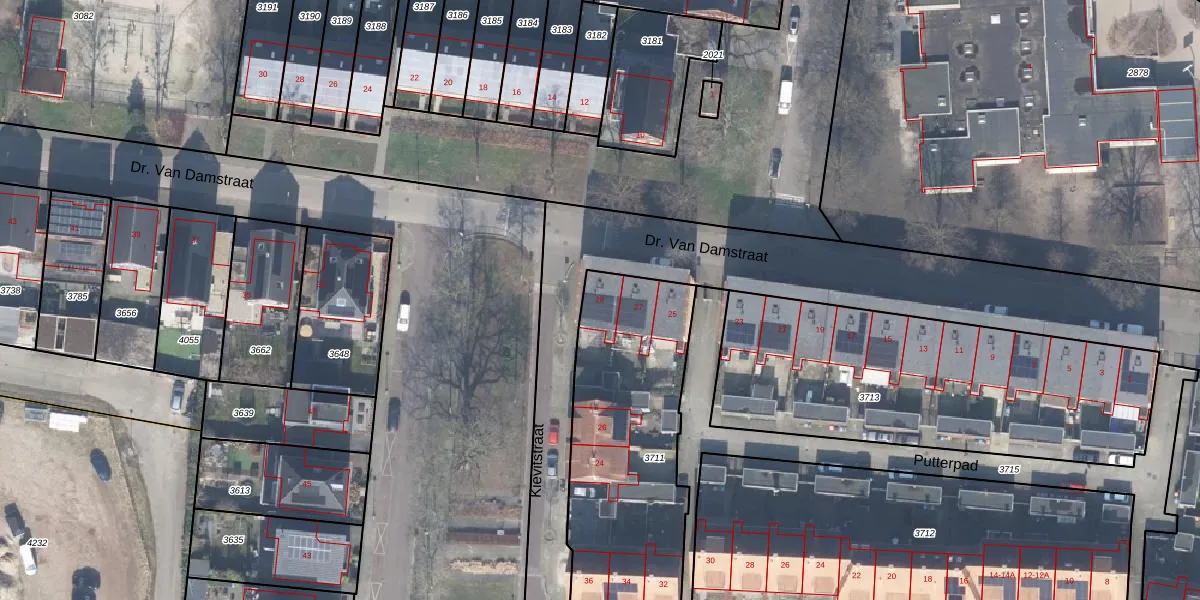 Dr. Van Damstraat 29 is gelegen op kadastraal perceel ESD00K3711. Deze kadastrale aanduiding is uniek en wordt gebruikt door het Kadaster om eigendomsrechten en andere zakelijke rechten vast te leggen. Het perceel maakt onderdeel uit van de kadastrale gemeente Enschede.