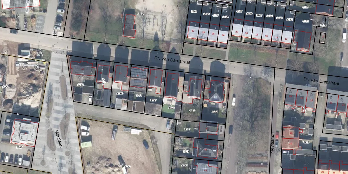 Gebruik de zoekbalk of klik op een perceel voor informatie over de adressen binnen dit perceel.