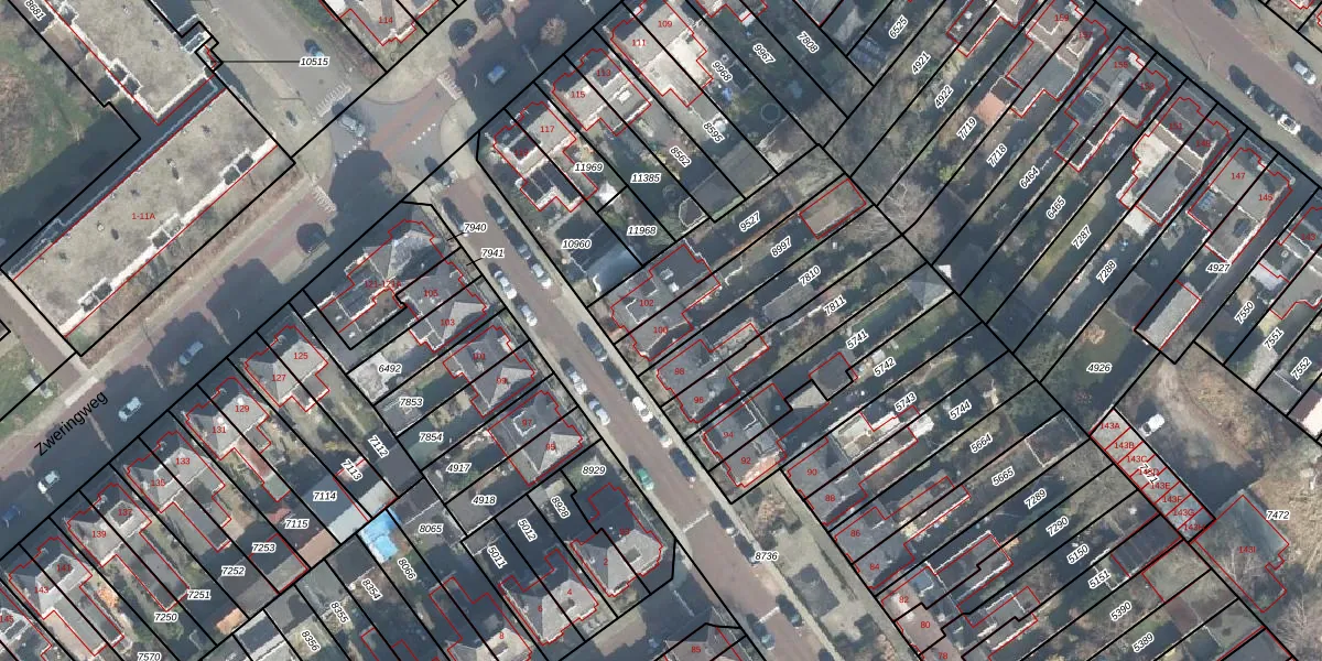 Gebruik de zoekbalk of klik op een perceel voor informatie over de adressen binnen dit perceel.