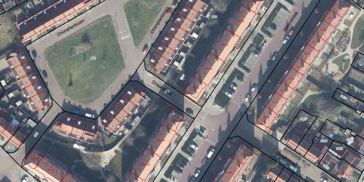 Het perceel waarop Draakstraat 12 staat heeft een oppervlakte van 4410 m². Dit is een zeer groot perceel. De perceeloppervlakte wordt geregistreerd door het Kadaster. Gedetailleerde informatie over de maten van dit perceel kunt u vinden in het rapport Kadastrale kaart met maatvoering van Draakstraat 12.