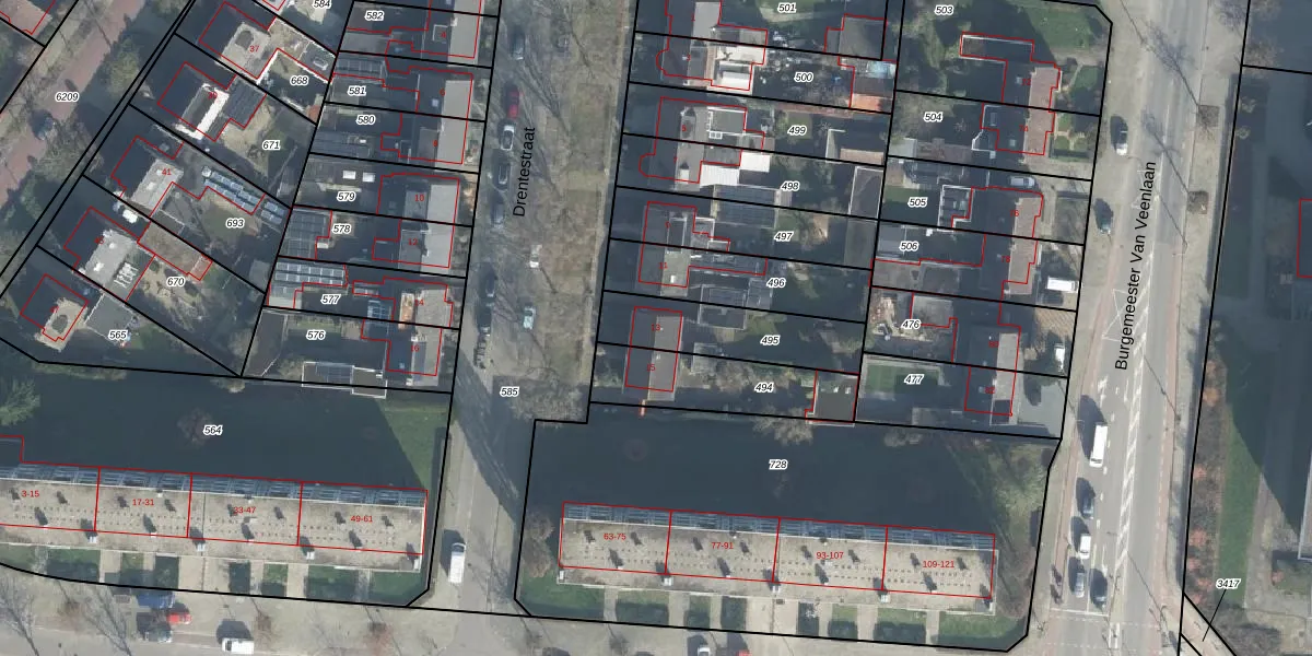 Het perceel waarop Drentestraat 13 staat heeft een oppervlakte van 322 m². Dit is een groot perceel. De perceeloppervlakte wordt geregistreerd door het Kadaster. Gedetailleerde informatie over de maten van dit perceel kunt u vinden in het rapport Kadastrale kaart met maatvoering van Drentestraat 13.