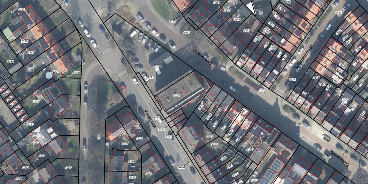 Het perceel waarop Drienerweg 167 staat heeft een oppervlakte van 465 m². Dit is een groot perceel. De perceeloppervlakte wordt geregistreerd door het Kadaster. Gedetailleerde informatie over de maten van dit perceel kunt u vinden in het rapport Kadastrale kaart met maatvoering van Drienerweg 167.