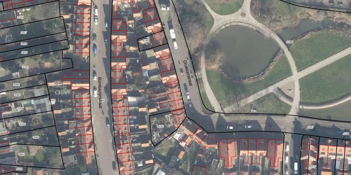 Het perceel waarop Drukkerstraat 7 staat heeft een oppervlakte van 6975 m². Dit is een zeer groot perceel. De perceeloppervlakte wordt geregistreerd door het Kadaster. Gedetailleerde informatie over de maten van dit perceel kunt u vinden in het rapport Kadastrale kaart met maatvoering van Drukkerstraat 7.