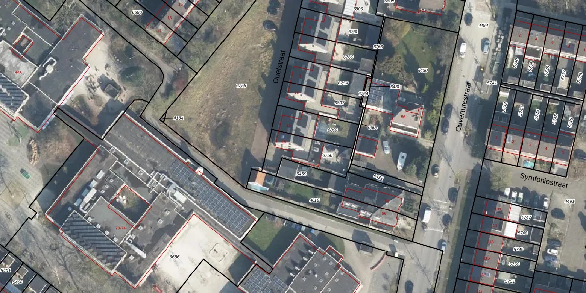 Gebruik de zoekbalk of klik op een perceel voor informatie over de adressen binnen dit perceel.